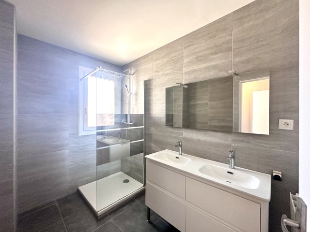 À l’étage, l’espace nuit propose trois chambres confortables (entre 10 et 11 m²), une salle d’eau avec douche à l’italienne, ainsi qu’un WC indépendant. Deux chambres orientées Sud.