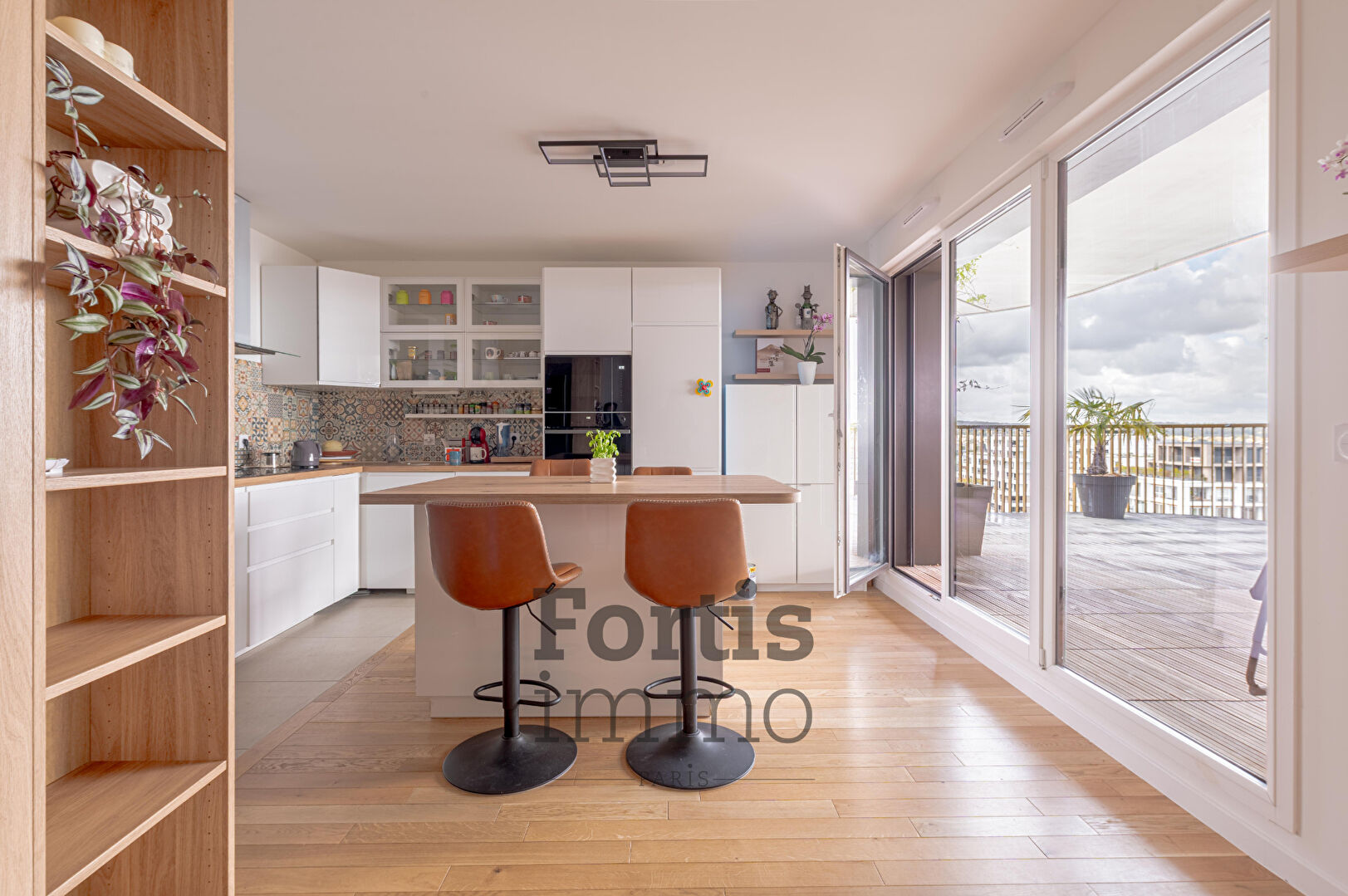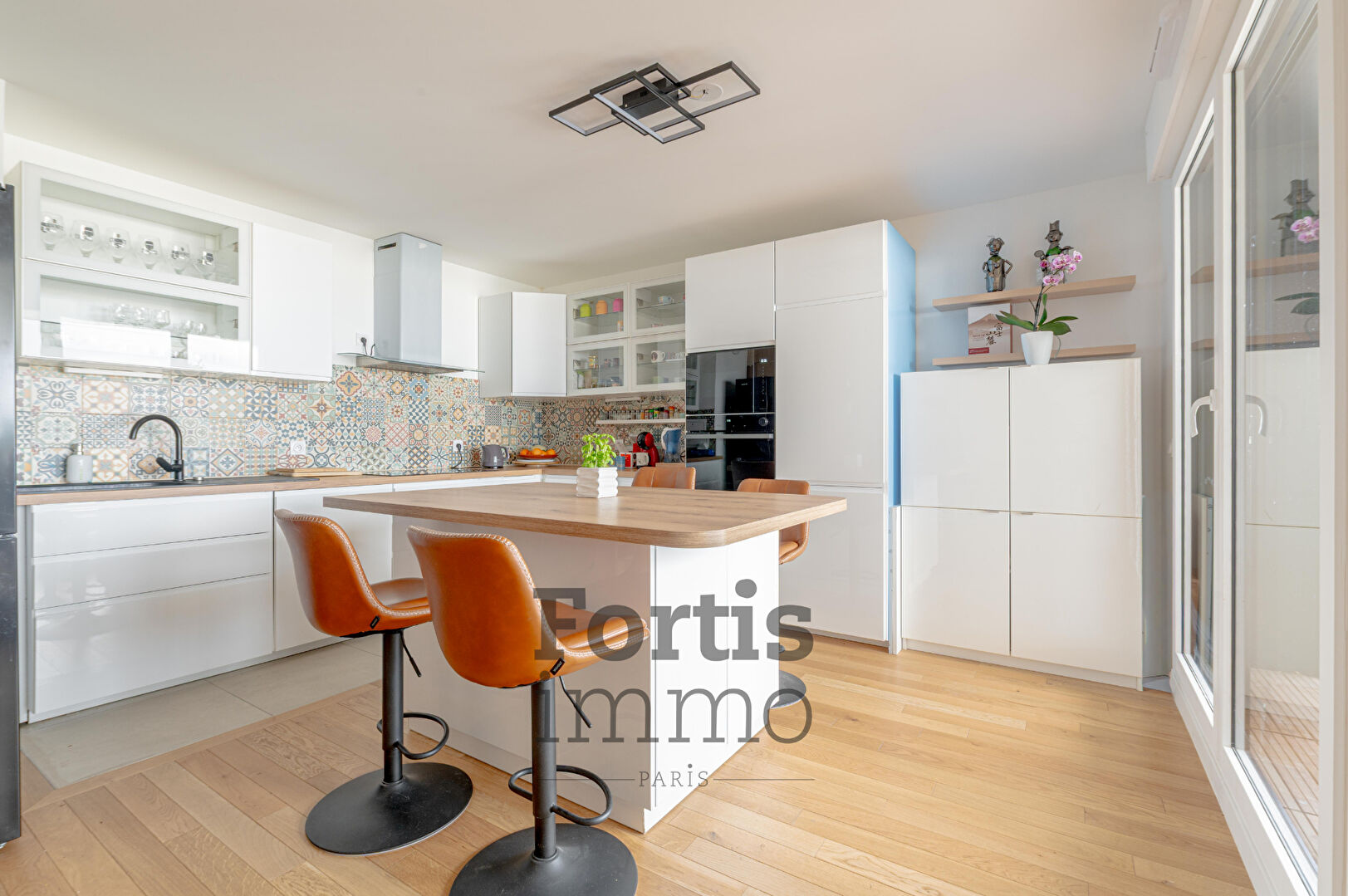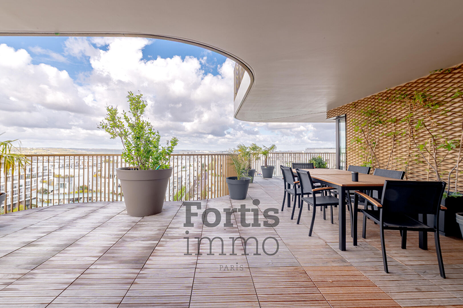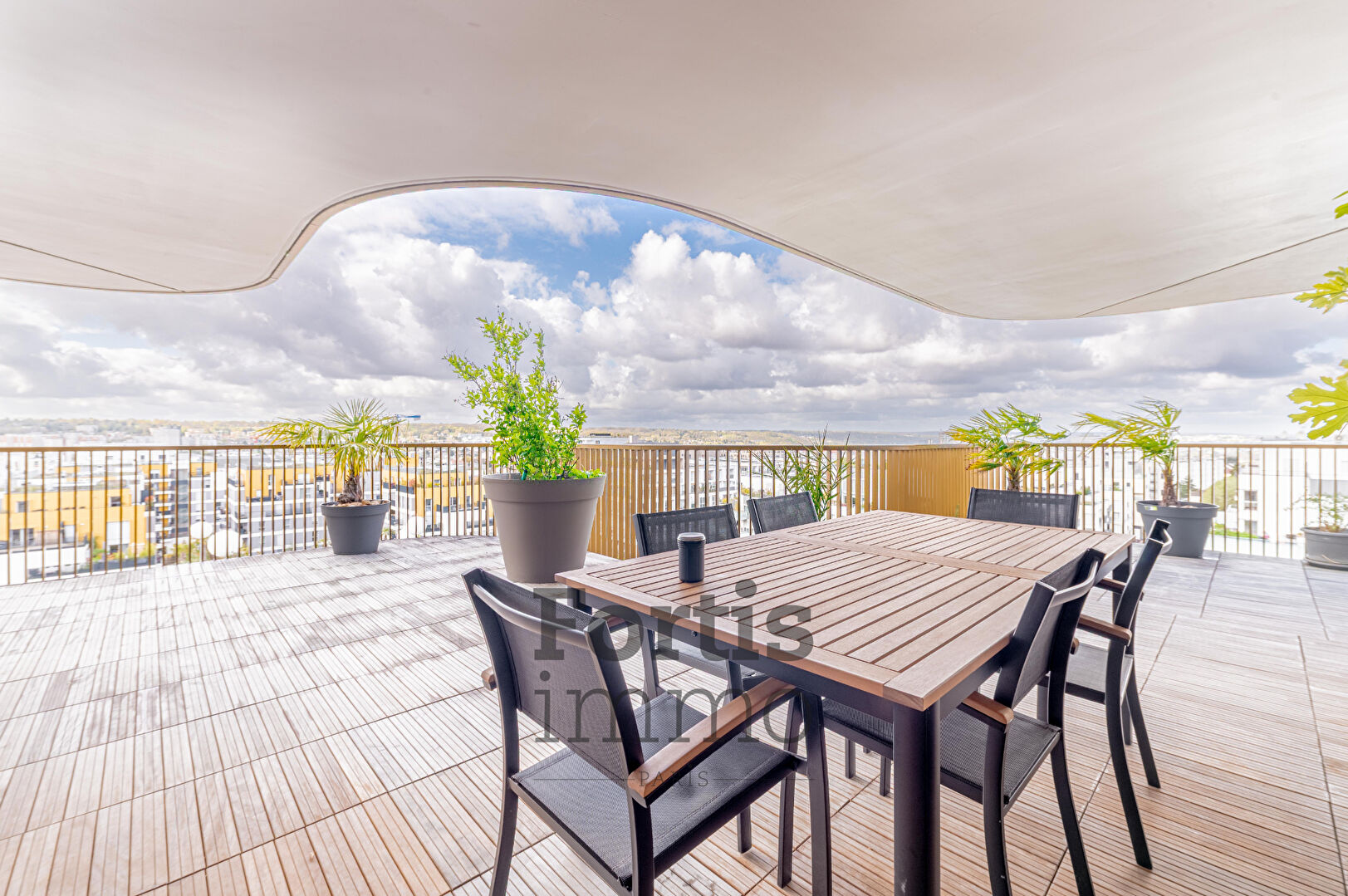 Superbe terrasse arborée, protégée, accessible depuis toutes les pièces, triple exposition et vue sur le Mont Valérien.