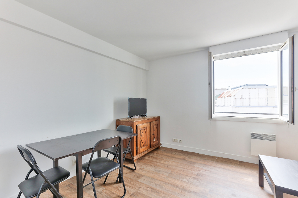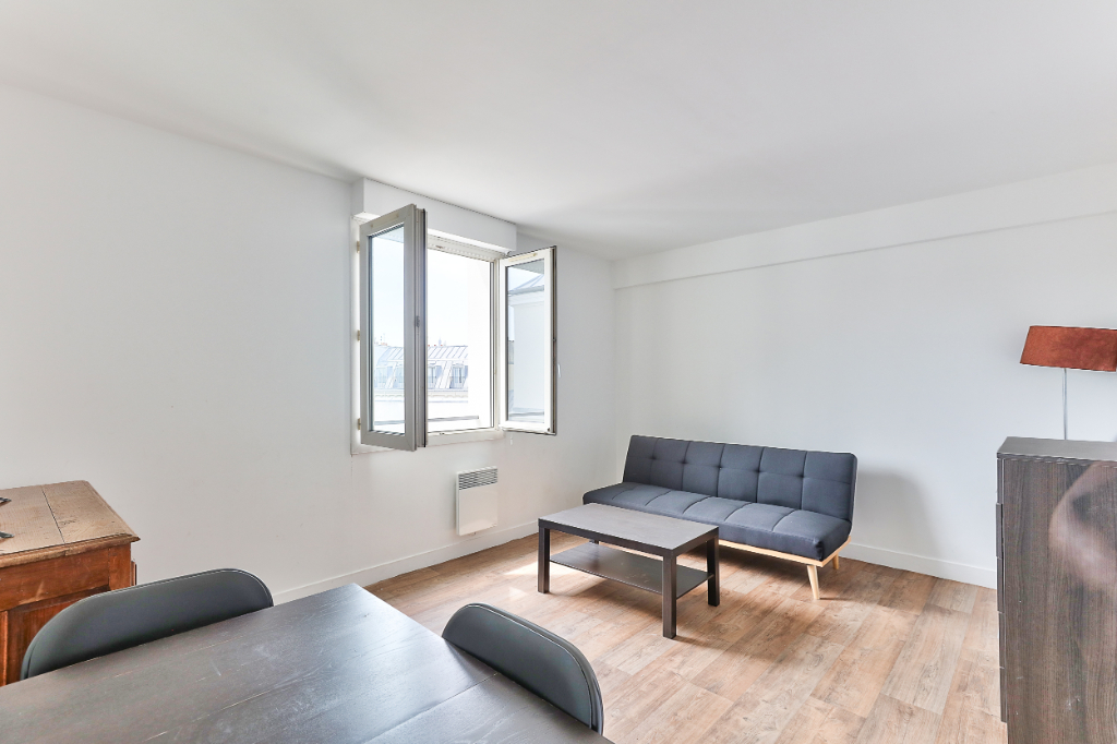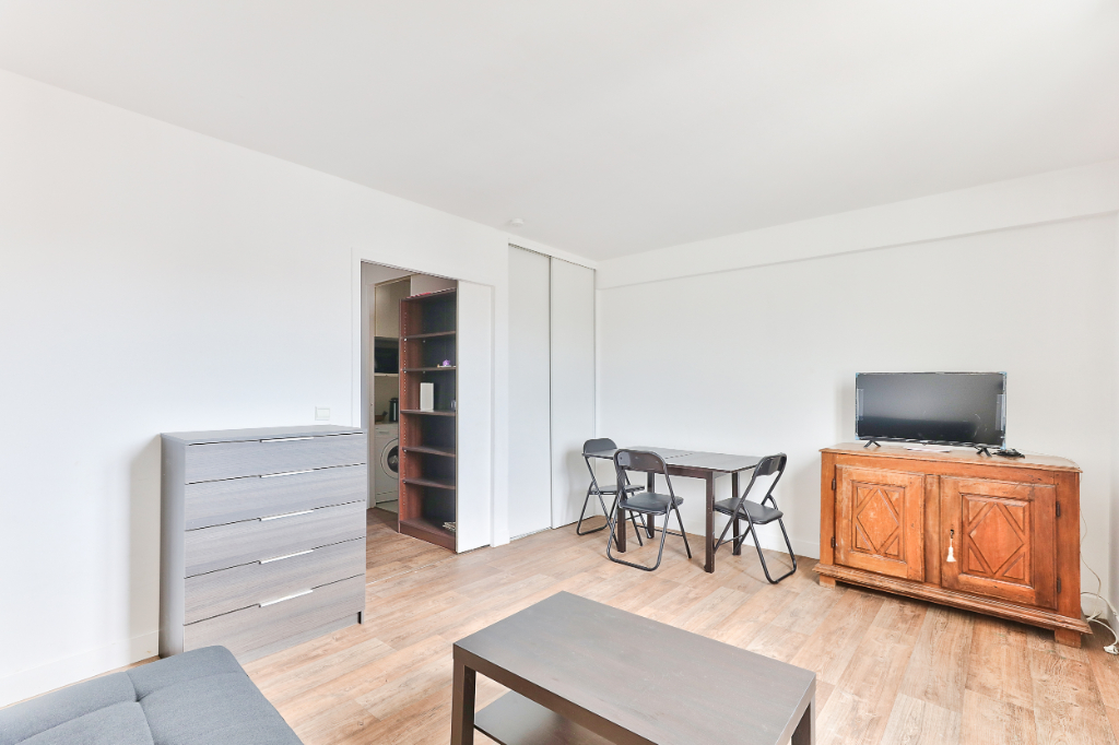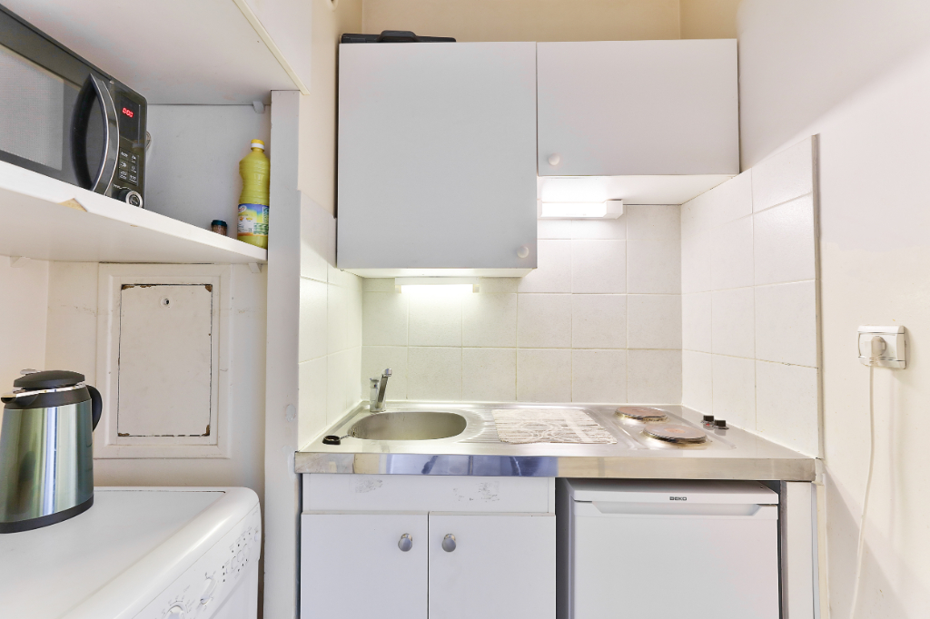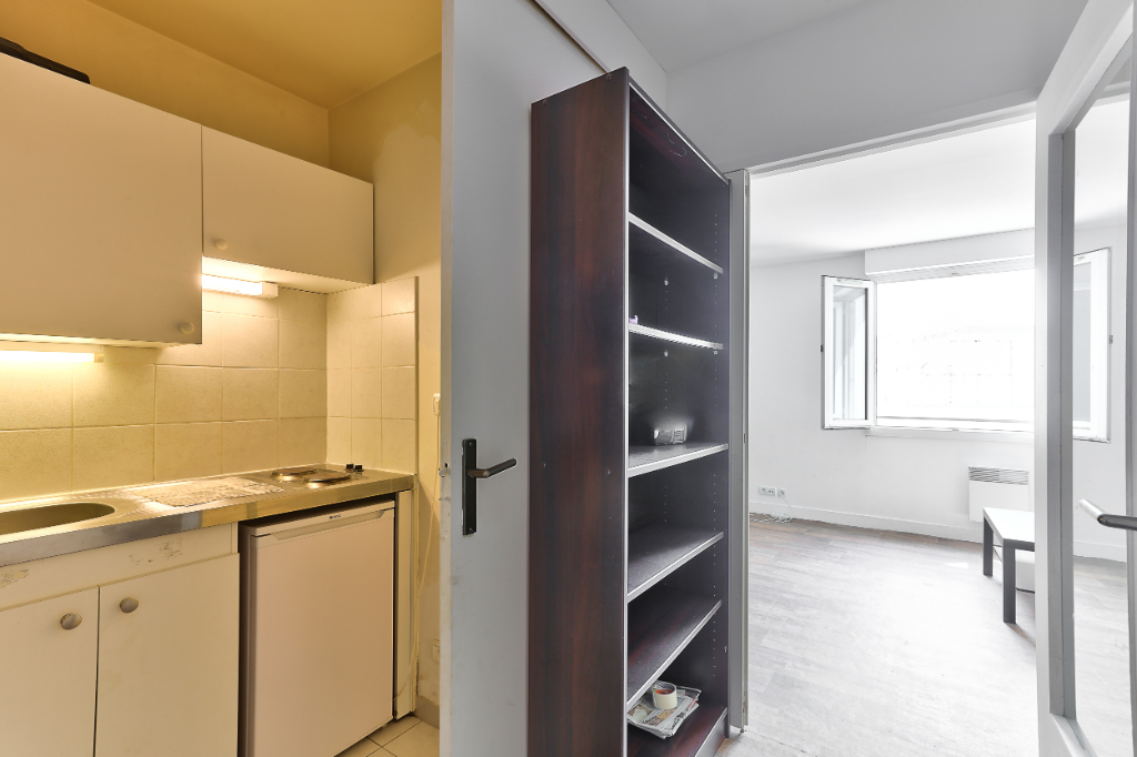 Paris 1er – Au sein d’une belle résidence moderne, sécurisée et avec ascenseur, studio comprenant une entrée, un séjour lumineux donnant sur cour avec une vue dégagée, un placard de rangement, une petite cuisine indépendante aménagée et équipée (micro-ondes, plaques électriques, machine à laver), ainsi qu’une salle de bains avec WC.