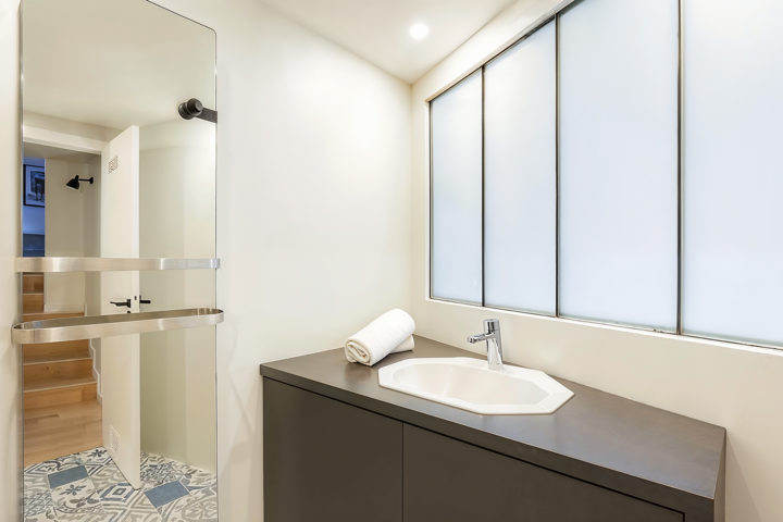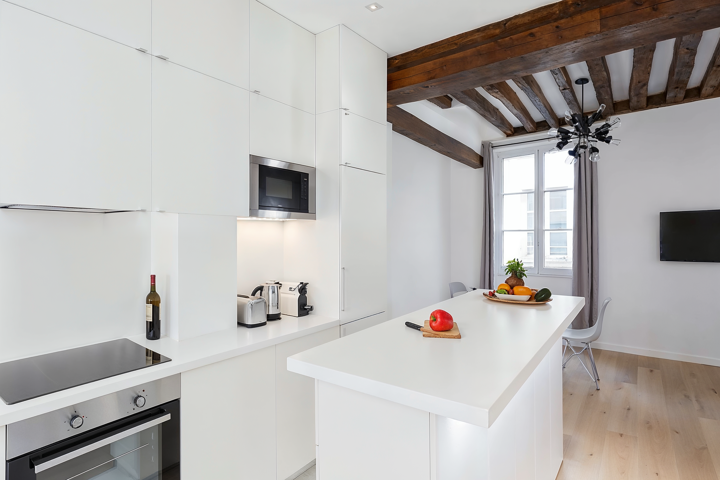 Rénové avec soin, il offre une alliance équilibrée entre le charme de l’ancien et des prestations contemporaines. Les poutres apparentes et la qualité des aménagements lui confèrent une atmosphère chaleureuse et élégante, typiquement parisienne.
