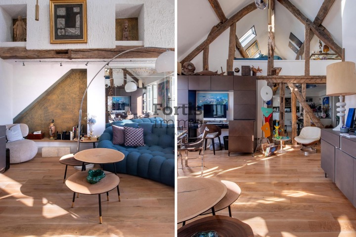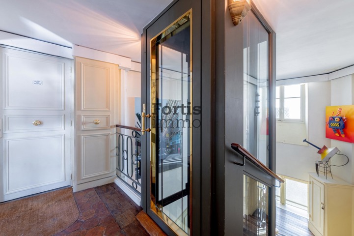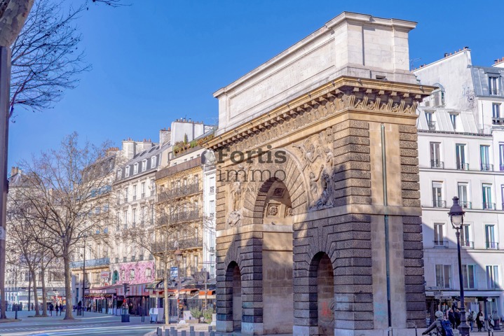 À la lisière du 2ème arrondissement, à proximité immédiate de la Porte Saint-Martin, au sein d’un bel immeuble ancien aux parties communes soignées, ce duplex de 140,51 m2 au sol (105,72 m2 Loi Carrez) se situe au 5ème et dernier étage avec ascenseur.