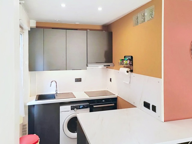 L’appartement offre de belles prestations. Il se compose d’un séjour agréable, d’une cuisine entièrement refaite à neuf avec de nombreux rangements optimisés, ainsi que d’une salle de bain également rénovée.