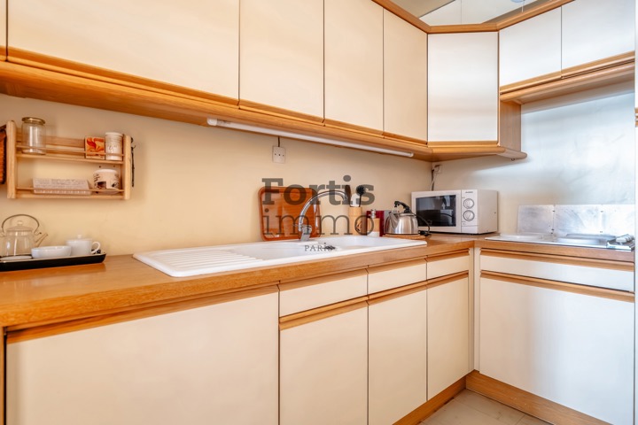 Une entrée avec dressing, une pièce de vie baignée de lumière avec vue dégagée et panoramique, une cuisine semi-ouverte aménagée et équipée, une salle de bain ainsi qu’un WC indépendant.