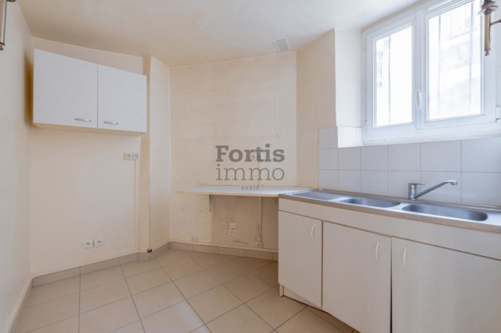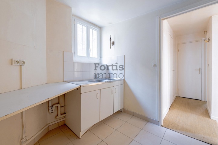 Au 1er étage d’une copropriété entièrement réhabilitée avec ascenseur, deux pièces à rénover de 43,35 m2 carrez, au calme sur cour, agencé comme suit: une entrée, un séjour, une cuisine séparée (ouvrable sur le séjour), une chambre, une salle de bains et un WC séparé.
