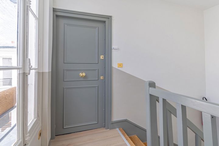 L’appartement est baigné de lumière et possède une vue dégagée sur les toits sans aucun vis-à-vis.