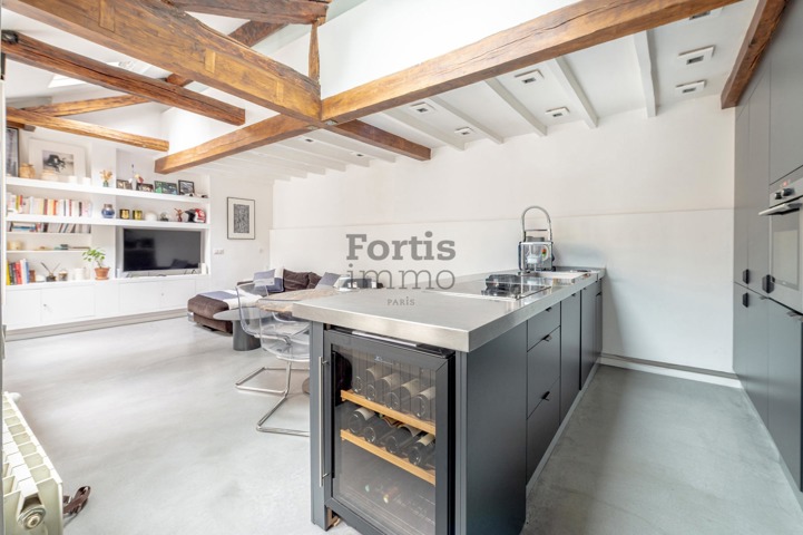 Situé dans le quartier Sainte-Avoye, au cœur du 3ème arrondissement, découvrez ce duplex entièrement rénové, niché au dernier étage par escalier d’un charmant immeuble typique du XVIIIe siècle.