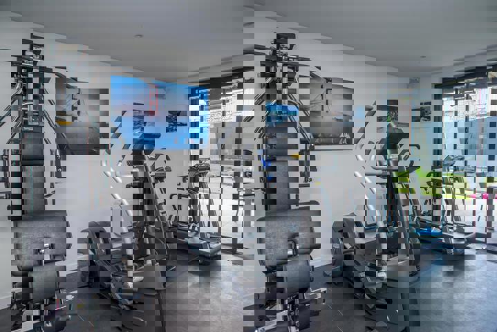 – un espace sport complet avec vélo elliptique, tapis de course, appareils de musculation et sac de frappe