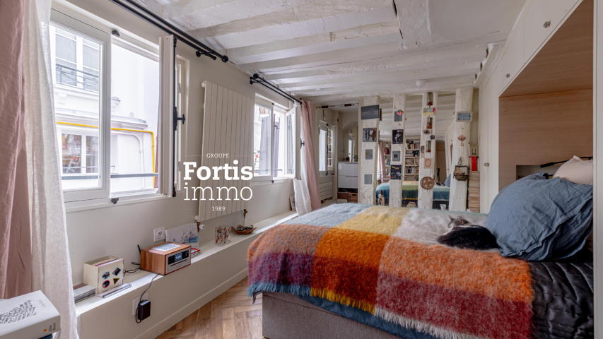 75002 Entre le métro Sentier et Étienne Marcel Quartier Montorgueil, rue Montmartre, Fortis Immo vous propose en exclusivité ce bien très atypique dans un immeuble ancien du XVIIIe siècle fraichement ravalé d’une surface de 46,68 m2 loi carrez et 55,46 m2 au sol. Il se compose au rez-de-chaussée d’un séjour de 17 m2, au sous sol une grande cuisine de 11,12 m2 et un débarras, à l’étage soit au 1er une jolie chambre de 18,56 m2 avec une salle d’eau et WC. Au calme donnant uniquement sur cour. Bon état général. Rack à vélos dans la cour. Un cocon de paix dans un quartier central, vivant et historique du coeur de Paris.