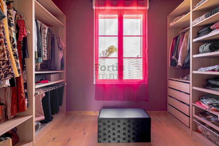 Au 2ᵉ étage : une pièce palière, un W.C séparé et deux chambres avec chacune salle d’eau et dressing privatifs.