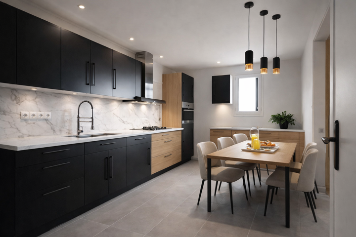 d’une cuisine aménagée et fonctionnelle (possibilité d’ouverture),
