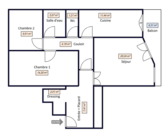 • Surface 73.28 m²