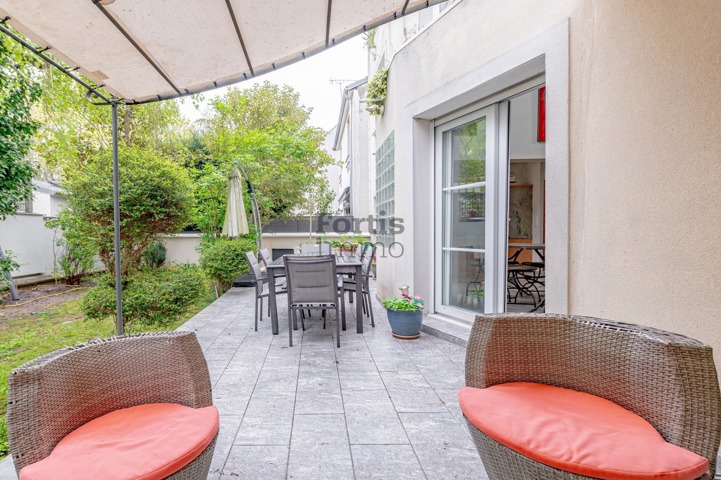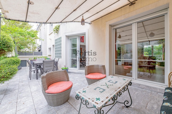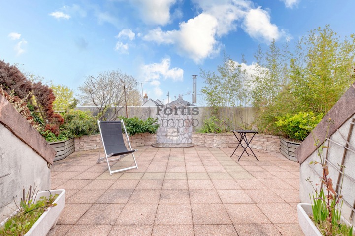 À l’extérieur, les espaces se prolongent naturellement : jardin arboré, terrasse intimiste et terrasse en toiture composent un ensemble rare en milieu urbain, idéal pour recevoir, se détendre ou profiter des beaux jours en toute discrétion.