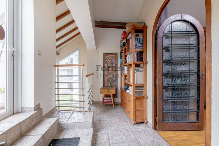 A 5 minutes à pied du métro (M11) Serge Gainsbourg et de Mairie de Lilas, à quelques pas de l’effervescence urbaine et pourtant à l’abri de toute nuisance d’une rue pavillonnaire, cette maison dévoile un univers rare, pensé comme un véritable lieu de vie et de création.