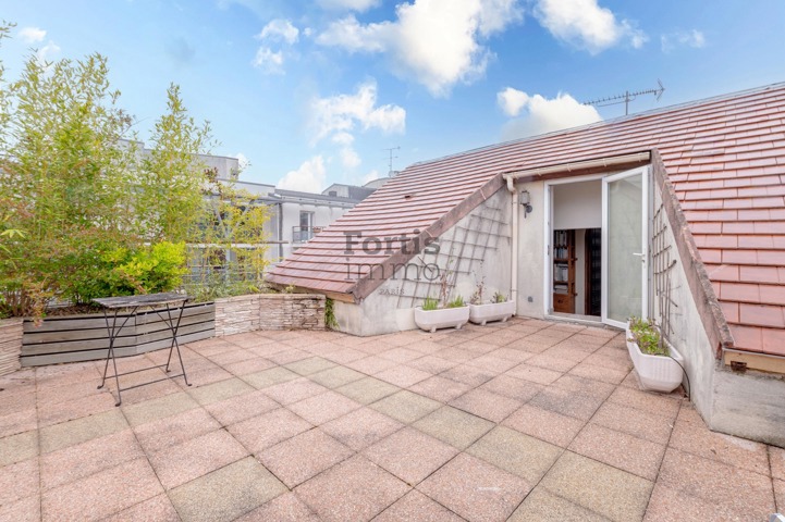 Au dernier niveau, une chambre de 16 m² avec point d’eau donne accès à un superbe roof top plein sud de 40 m², sans vis-à-vis : un espace de détente exceptionnel.