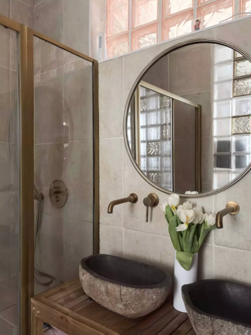 Rénové en 2021, l’appartement a été prolongé par une partie couverte sous verrière créant la partie salon, ainsi qu’un cube intimiste abritant la chambre.