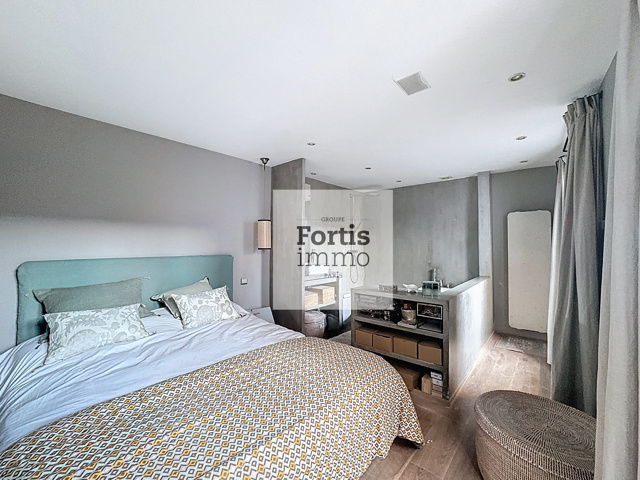 À l’étage supérieur, une seconde chambre, également dotée de placards intégrés, bénéficie d’une salle de bains avec baignoire, douche et W.C , offrant un confort optimal.