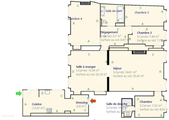 L’appartement se compose d’un vaste séjour exposé Ouest, d’une salle à manger côté Est, d’une cuisine indépendante, de trois chambres, d’un bureau, d’une salle de bain et d’une salle d’eau. Une cave complète ce bien.