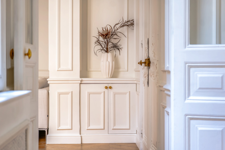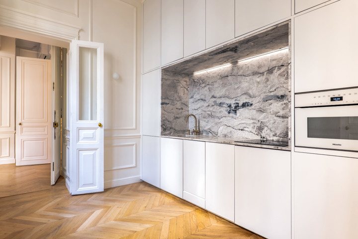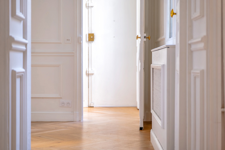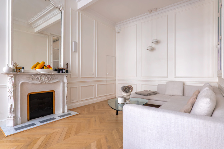 La rénovation récente met en valeur les prestations anciennes conservées : parquets, moulures et cheminée d’époque, créant une harmonie entre patrimoine et modernité. L’appartement est également climatisé pour un confort optimal.