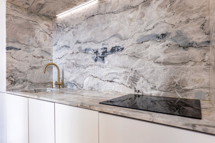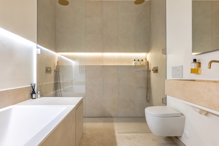 L’appartement se compose d’une entrée, d’une cuisine élégante, d’un salon-séjour de réception sublimé par une cheminée, ainsi que d’un bureau pouvant faire office d’espace de travail ou de bibliothèque. La chambre, dotée de rangements intégrés, bénéficie d’un environnement paisible. La salle de bains propose baignoire et douche. Des WC séparés avec lave-mains complètent l’agencement.