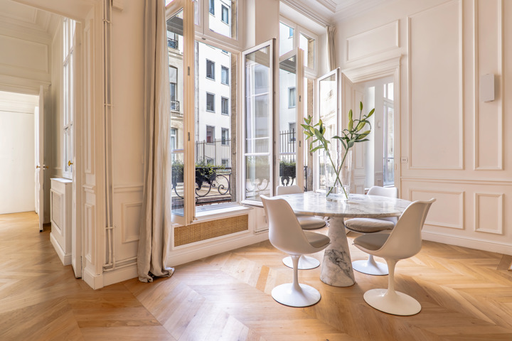 À deux pas de la Fondation Pinault et de la Banque de France, au cœur d’un environnement prestigieux, cet appartement de réception d’exception se situe au calme absolu sur la cour d’un immeuble ancien parfaitement entretenu.