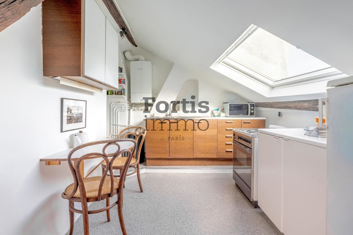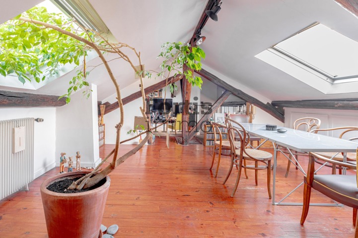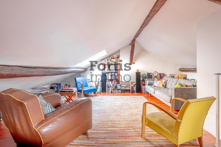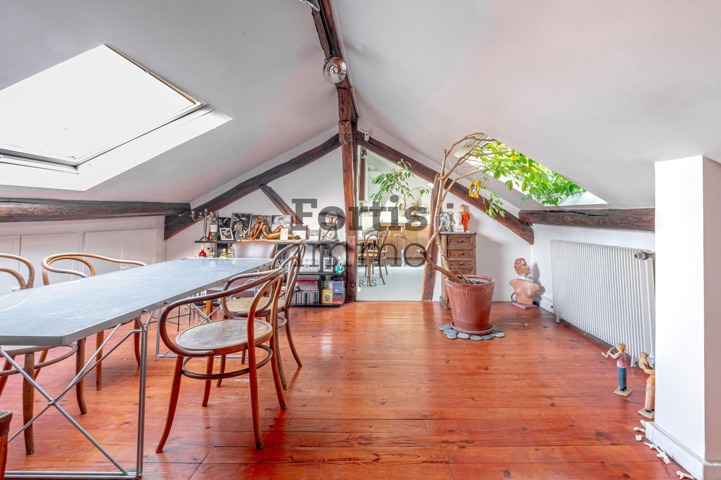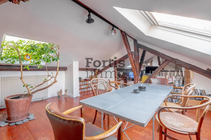 Vous bénéficierez également d’une cave, de la possibilité d’acquérir en plus une place de parking, de la fibre optique, d’un système de chauffage et d’eau chaude individuel au gaz, de prestations de qualité (parquet massif, poutres, vue très agréable, charme d’un duplex en dernier étage, etc…), et d’un immeuble des années 30 très bien entretenu et sécurisé (double code), en très bon état, puisqu’il a bénéficié en 2020, d’un ravalement complet côté rue et côté cour, ainsi qu’une rénovation des parties communes.