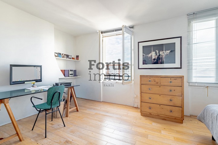 Appartement en Duplex de 124m2 (89,79m2 loi Carrez), situé au 5ème et dernier étage, qui vous propose, 2 niveaux: une entrée avec placards de 7,47m2, une spacieuse pièce de vie de 60,64m² (surface au sol) et 27,96m2 (loi Carrez) traversante Est/Ouest avec sa cuisine aménagée et équipée, 4 chambres (18,80m2, 9,80m2, 9,89m2, et 10,36m2), 1 salle de bains avec toilettes, 1 WC séparé avec lave-main, un dégagement, et de nombreux rangements.