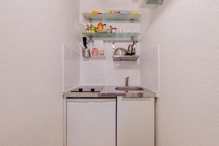 Situé à 2 pas des jardins du Palais Royal, dans un immeuble entretenu et ravalé récemment, au 5ème étage sans ascenseur, un APPARTEMENT de type studio, comprenant une pièce de vie, kitchenette et une salle de bains avec WC.