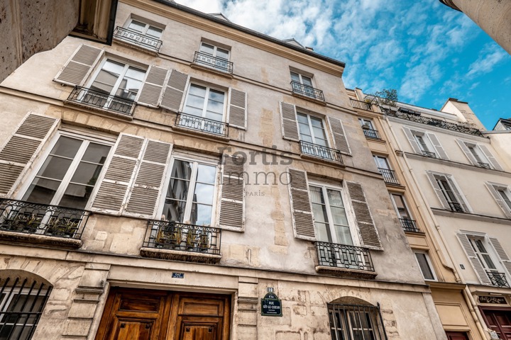 L’immeuble, édifié sur une parcelle médiévale issue de l’ancien Hôtel d’Arras (XIVᵉ siècle) et remanié aux XVIIᵉ-XVIIIᵉ siècles, est situé dans l’une des plus anciennes rues de Paris.