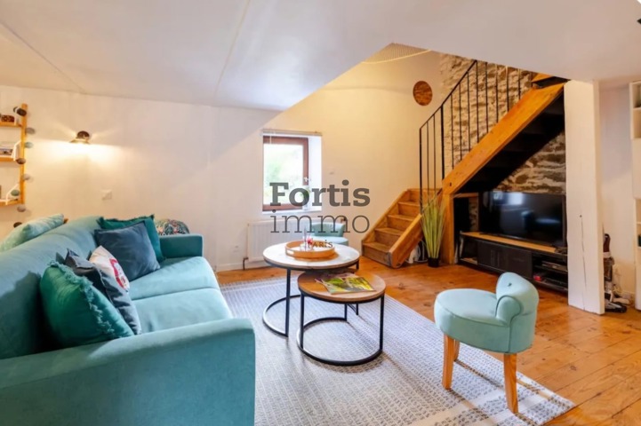 – Au rez-de-chaussée : une pièce de vie avec cuisine aménagée, et une salle d’eau avec WC.